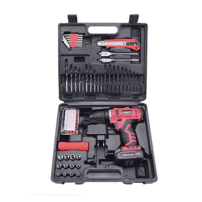 Esta Caja de Herramientas Nappo es fácil de usar, práctico y con una batería recargable de 1300 mAh con el que podrás realizar tus trabajos, con mayor comodidad y practicidad. El maletín incluye múltiples productos diseñados para trabajos específicos como taladro, 8 llaves allen,10 mechas para madera,10 mechas helicoidales, 2 paletas, trincheta, 30 puntas de destornillador de 25mm, 12 brocas, 1 conector, linterna,. Sinh dudar, una caja versátil y sumamente completa para utilizarlo en el hogar o fuera de ella. Incluye además cargador y batería.