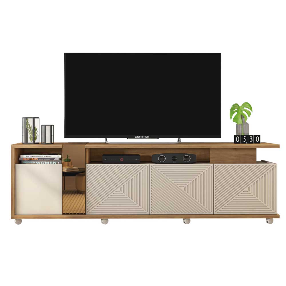 El Rack Caemmun Columbus es un producto moderno, en el que su principal enfoque de estructura es la aplicación del corte láser 3D el cual combina con el vidrio reflectante en color cobre en el frente, dejando un detalle en la superficie y haciendo que este mueble tenga estilo y sobriedad para cualquier espacio dentro de tu hogar. Además del diseño moderno, tiene una estructura robusta con tapa lateral resistente y base en MDP de 25 mm.